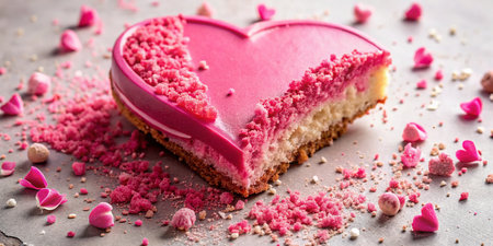 Broken Pink Heart Shaped Cake, Crumbled Pastry, Dessert, Valentine's Day, Sad Love Concept