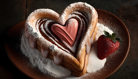 heart-shaped danish pastry with a fruit filling and a dusting of powdered sugar, created with generative ai