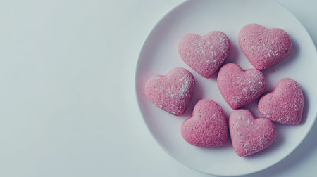 Delightful pink heart-shaped cookies arranged on a white plate, perfect for celebrations. Ideal for Valentine's Day or any sweet occasion!
