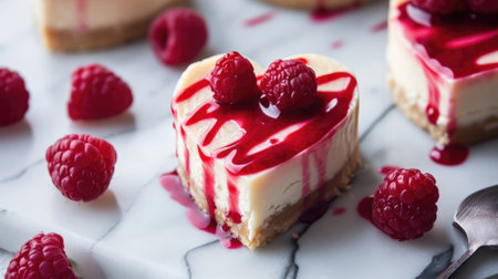 heart-shaped cheesecakes with a raspberry coulis drizzle generative ai
