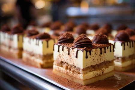 a tiramisu pastry on a bakery shelf, created with generative ai