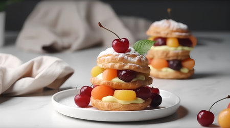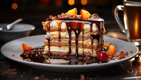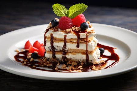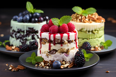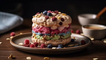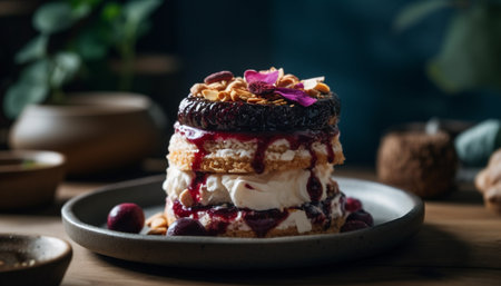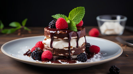 Freshness and sweetness on a plate, a gourmet dessert indulgence generated by artificial intelligence