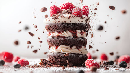 AI Generated. Delicious Layered Chocolate Raspberry Dessert Square