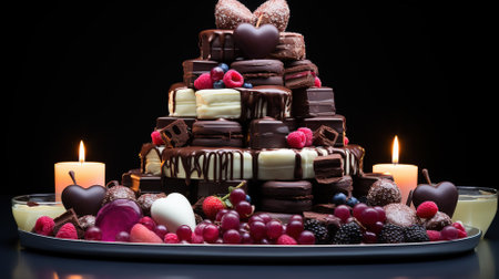 pile of chocolate cakes, with different toppings and fillings, created with generative ai