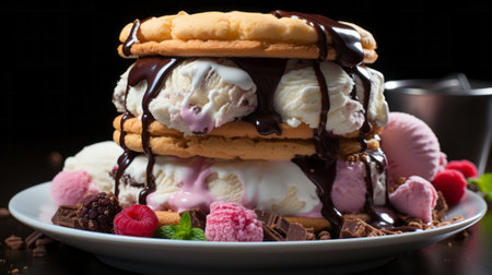 Ice cream sandwich. Ice cream and cookies. Generative AI.