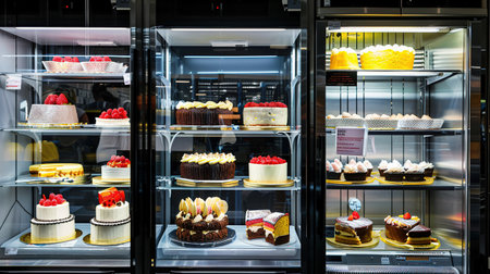 Glass Display Case Filled with Delicious Cakes in a Bakery. High quality photo