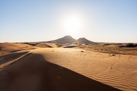 Amazing landscape in the Sahara Desert, Merzouga Morocco. Beautiful adventure trip among the sand dunes