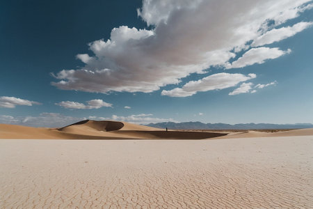 majestic sand dunes, with a lone figure making its way across the desert, created with generative ai