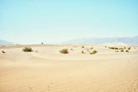 Two tourists on Mesquite Dunes, Death Valley, California, USA