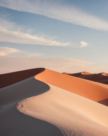 AI Generated. Sand dunes at golden hour in a vast desert landscape