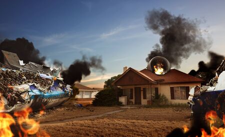 Plane ruins near the house, it's burning over there