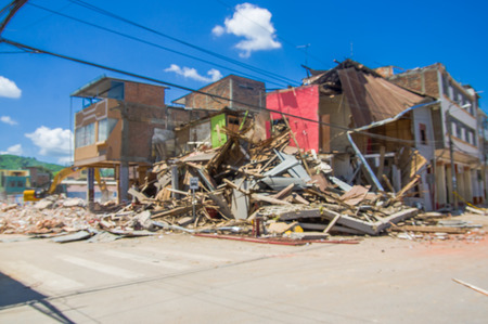 Portoviejo, Ecuador - April, 18, 2016: Building showing the aftereffect of 7.8 earthquake that destroyed the city center.