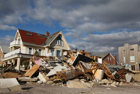 FAR ROCKAWAY, NEW YORK - NOVEMBER 4, 2012: Destroyed beach house in the aftermath of Hurricane Sandy in Far Rockaway, New York. Image taken 5 days after Superstorm Sandy hit New York