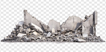 Ruins of Destruction Isolated Concrete Debris and Wreckage from a Demolished Building on Transparent Background