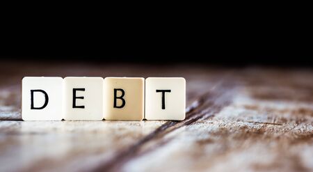 Develop word written on wood block. Develop text on cement table for your design, concept.