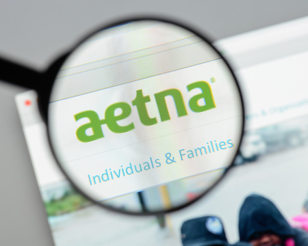 Milan, Italy - August 10, 2017: Aetna website homepage. It is an American managed health care company. Aetna logo visible.
