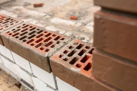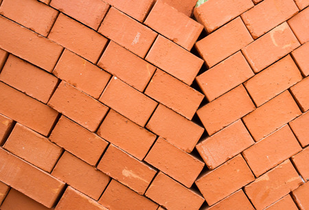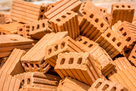 Heap of a red ceramic brick. A background on a theme about a building material.