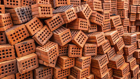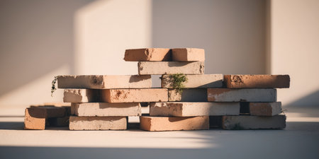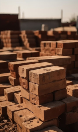 AI Generated. Stacked rustic bricks creating a sturdy foundation for construction