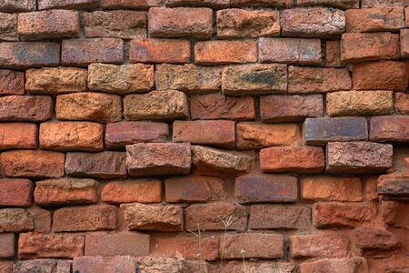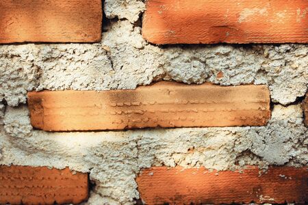 Texture of brick wall with cracked weathered structure red white color close-up .