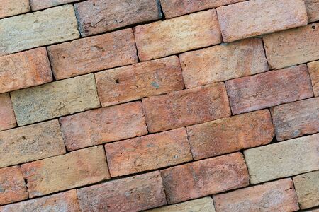 Home decoration concept and abstract background.Many brown brick blocks with white cement. Closeup view of brick blocks wall. The wall texture and background for wall design. Texture of brown brick blocks wall and copy space.