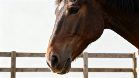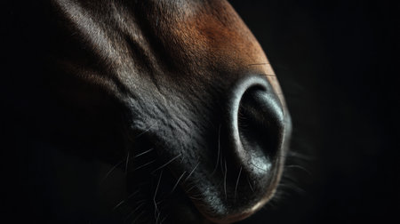 Close-up view of a horses nose highlighting the texture and details under gentle lighting, emphasizing its natural beauty and features.