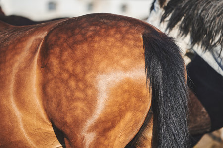 Close-up of a light-brown horse crop with dapple. Horse's rear end and tail