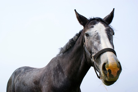 Head of a horse against the sky background