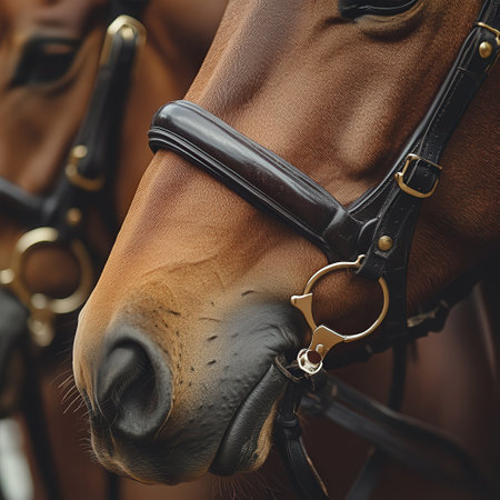 Close-up of a horse's bridle. Equestrian sport.