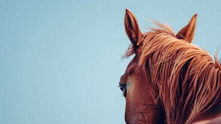 Close-up of chestnut horse's head and mane against clear blue sky