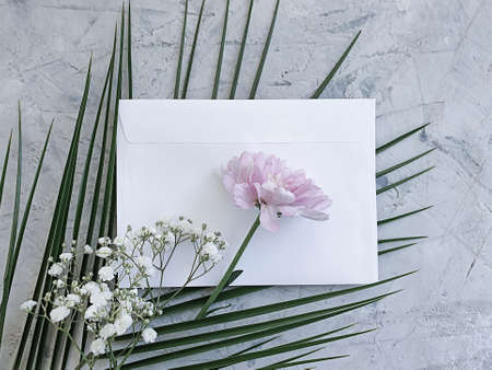 Letter, postcard congratulations background. Layout, top view, wedding invitation. Happy birthday! Mother's day, spring card.