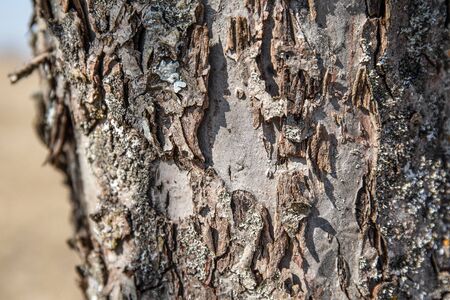 Cracks and scratches tree bark texture close-up