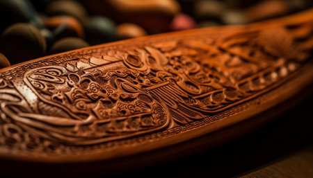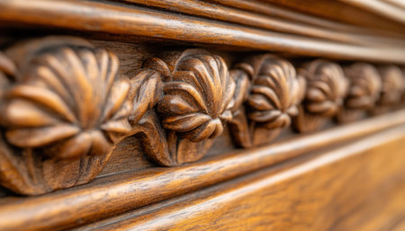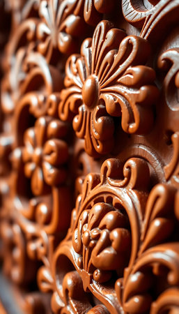 Macro Photography of Intricately Carved Wood. AI Generated.
