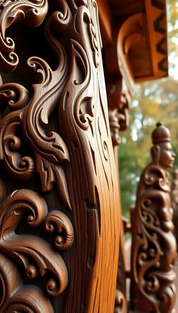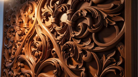 Intricate wooden carving with ornate details
