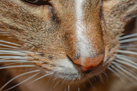 Macro shot of cat muzzle. Cat's nose with a mustache
