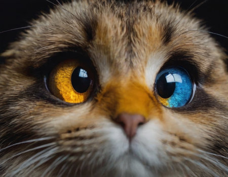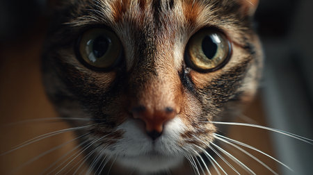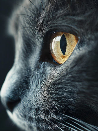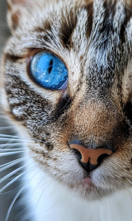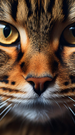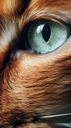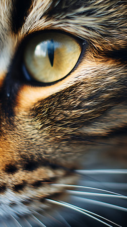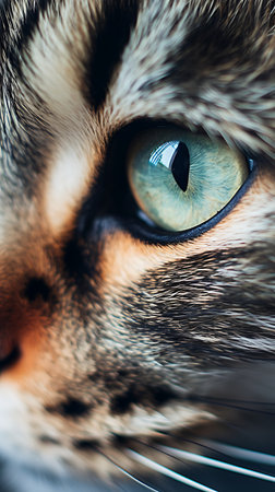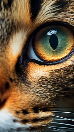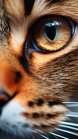 Macro shot capturing the sharp details and mesmerizing eyes of a domestic cat