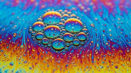 Beautiful psychedelic abstractions on the surface soap bubbles.