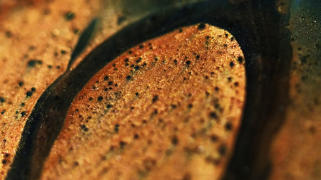 Abstract background of oil paint in blue and orange tones. Macro photography