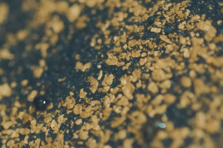 Gold particles in the washed rock, macro photo