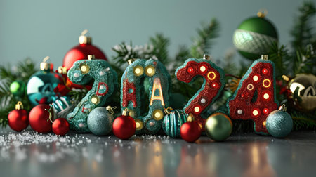 2024 text covered with Christmas toys