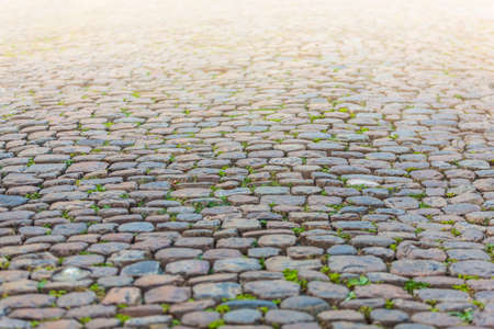 rocky vintage road with different shapes and textures between which sprouts of grass grow