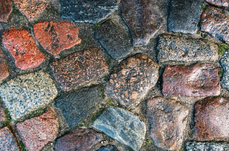 stone pavement texture, granite cobblestoned pavement background, abstract background of old cobblestone pavement close-up