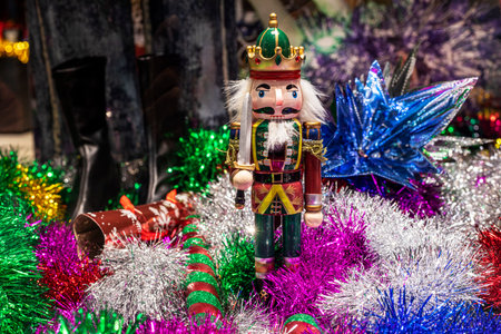 Traditional Christmas souvenir nutcrackers sold on Christmas market