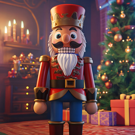 A charming 3D render of a nutcracker in a festive Christmas setting. A perfect holiday image!