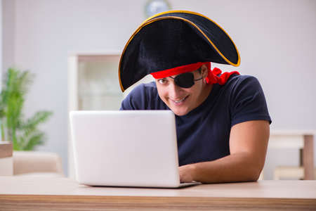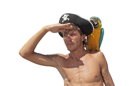 A skull and crossbones pirates jolly roger sign in pirate clothes eye patch and pirate hat