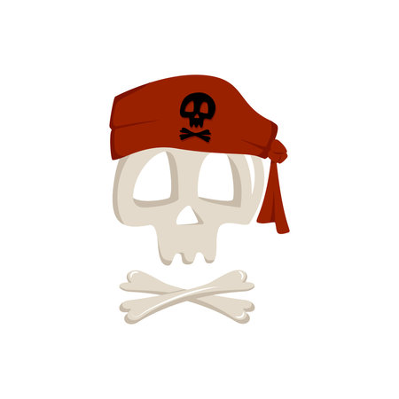Skeleton skull and crossbones in pirate bandana hat. Item for Halloween, holiday and design