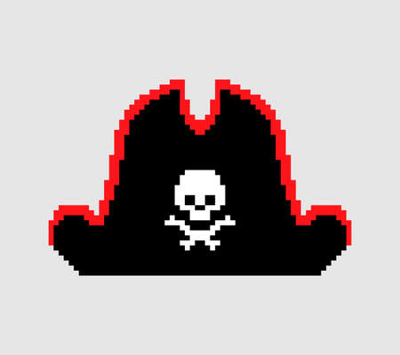 Pirate hat pixel art. pixelated Filibuster cap 8 bit. vector illustration
