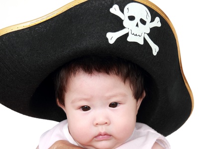 Im the captain of this ship. Shot of a little boy wearing a pirate costume against a white background.