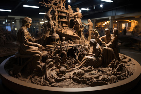Chocolate sculpture stunning in confectionery competition., generative AI