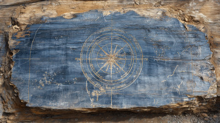 A detailed ancient map carved into stone serves as a guide for exploration, showcasing the art of navigation from an earlier time.