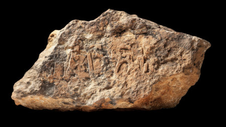 Rough sun bleached stone showing ancient carvings on transparent background